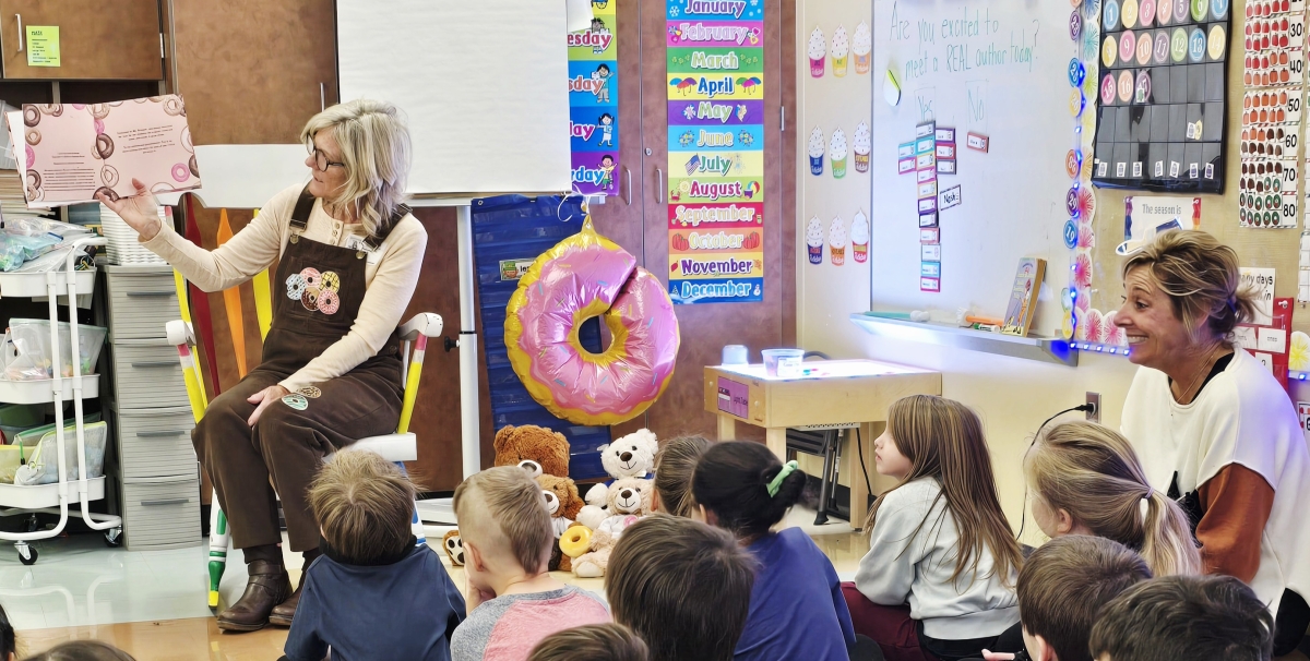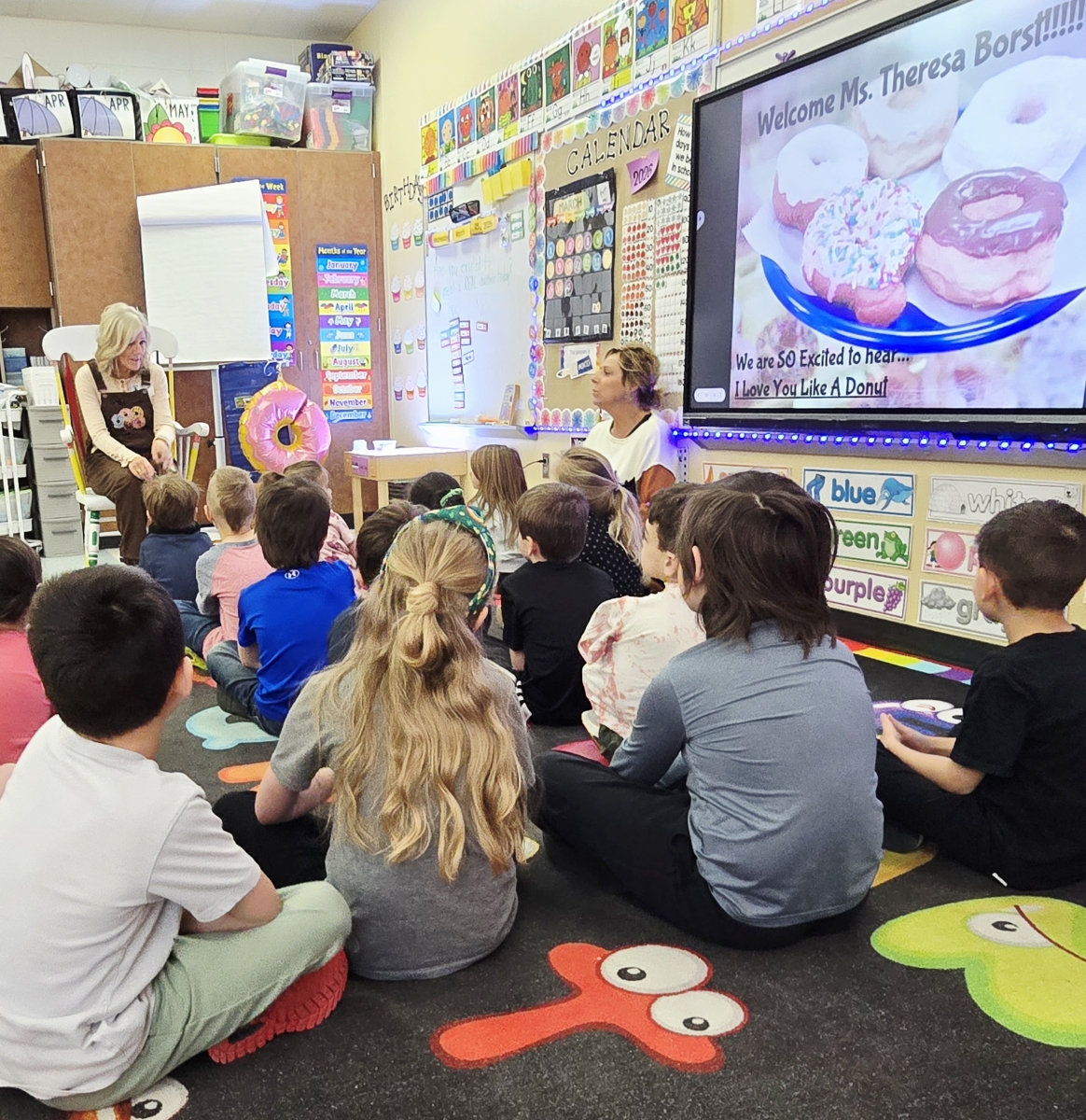 Today was a truly special day in Mrs. Krauser’s kindergarten classroom at Three Rivers Elementary, as author Theresa Borst paid a visit to share her beloved children’s book, I Love You Like a Donut.