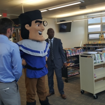 Mr. Armstrong was no doubt there for the purpose of surprising Rachel, but he also took the time to say hi to staff and students; even stopping briefly to address a fifth grade class about college and future goals.