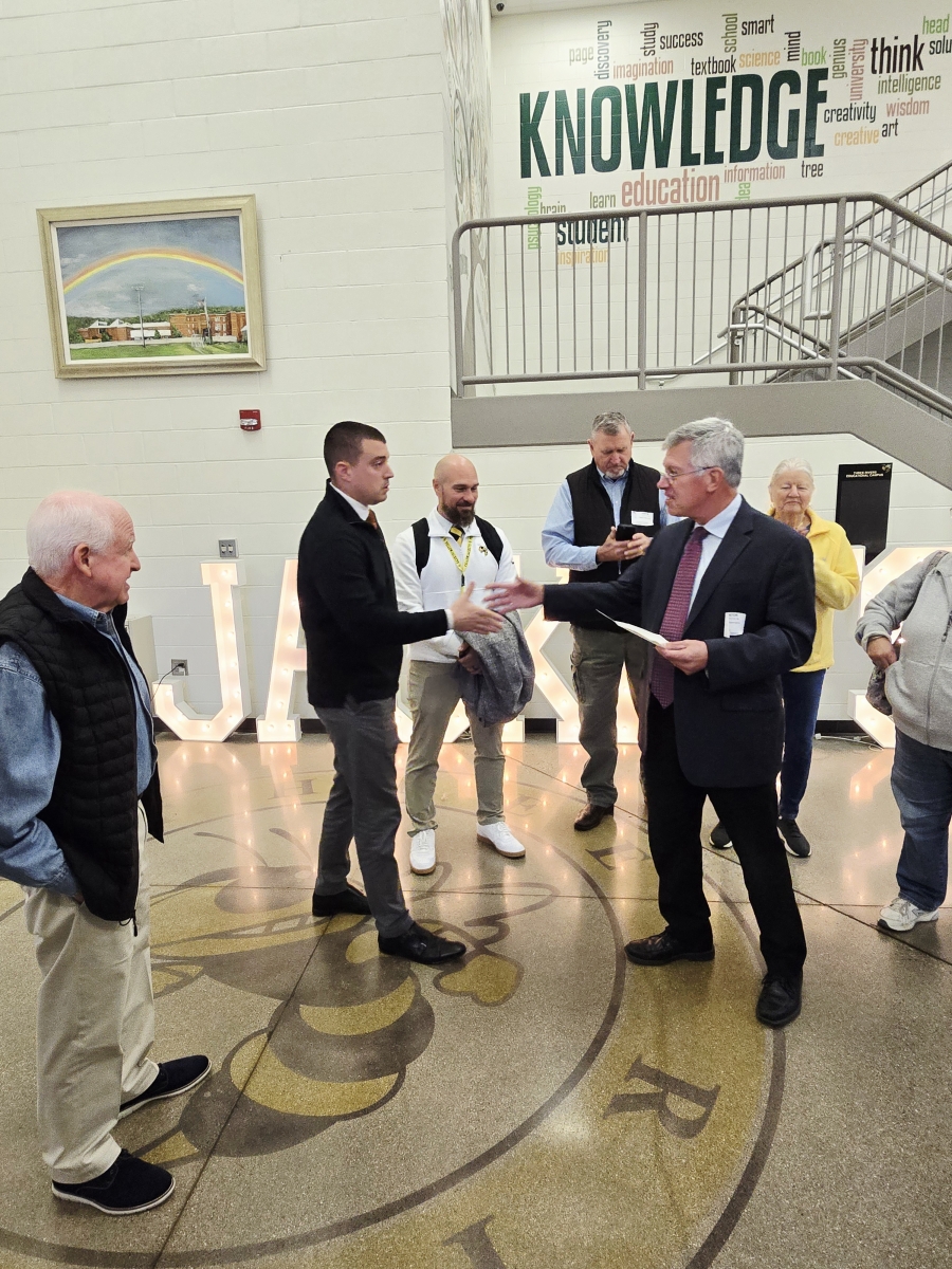 On Friday, October 24, 2025, members of the Three Rivers St. Joseph’s Knights of Columbus visited the Three Rivers Campus to continue their longstanding tradition of supporting local education. During their visit, the group presented a generous donation of $4,900 to the Three Rivers Special Education Department, with this year’s funds designated to support special education field trips—providing students with unique and enriching learning experiences beyond the classroom.